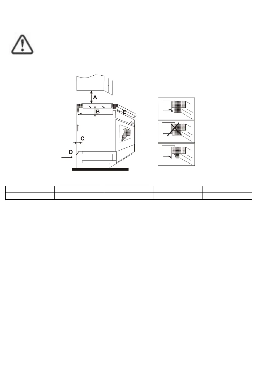 Note: The safety distance between the hotplate and the cupboard above the hotplate