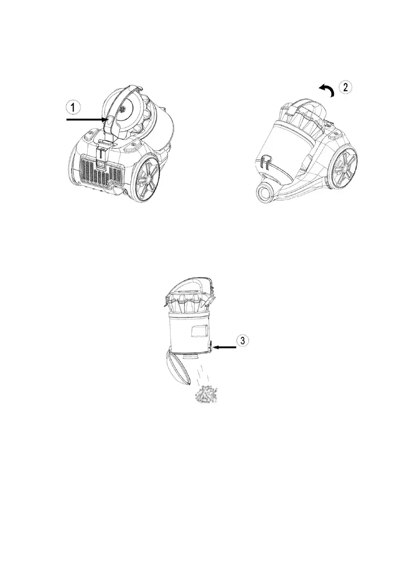 Сауыттан қоқысты сілкіп түсіріңіз. Бұл үшін шаңжинағыш сауытты ашатын