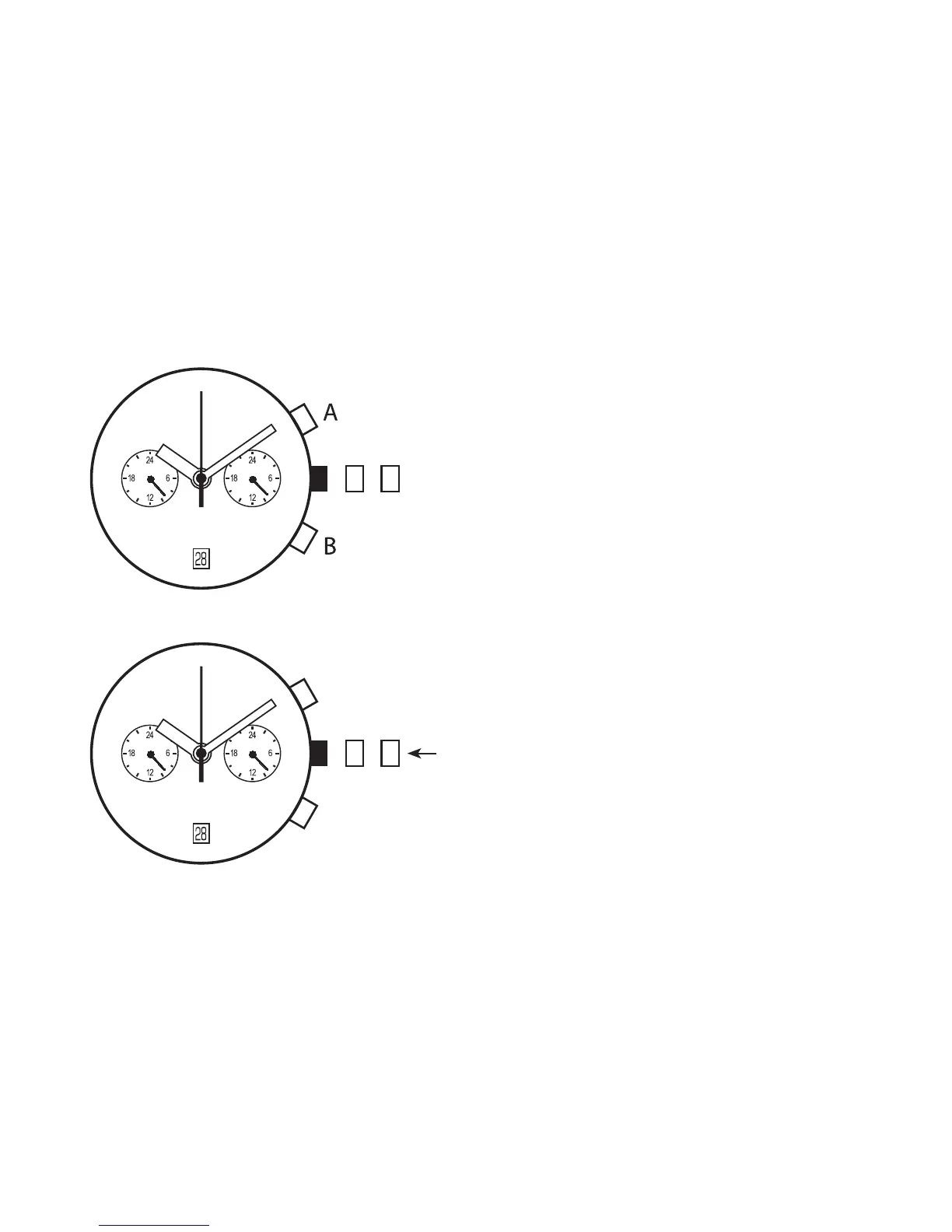 3. Press button A or B to reset the dual time