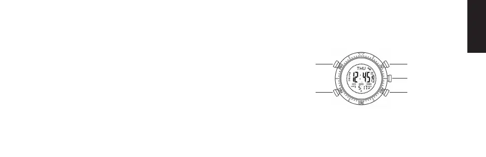 LIGHT / SELECT (buon A) UP / BARO (buon E)