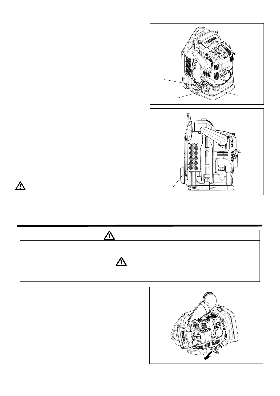 • Lors de décharger le carburant, prendre garde à arrêter le moteur et confirmer que le moteur se refroidit.