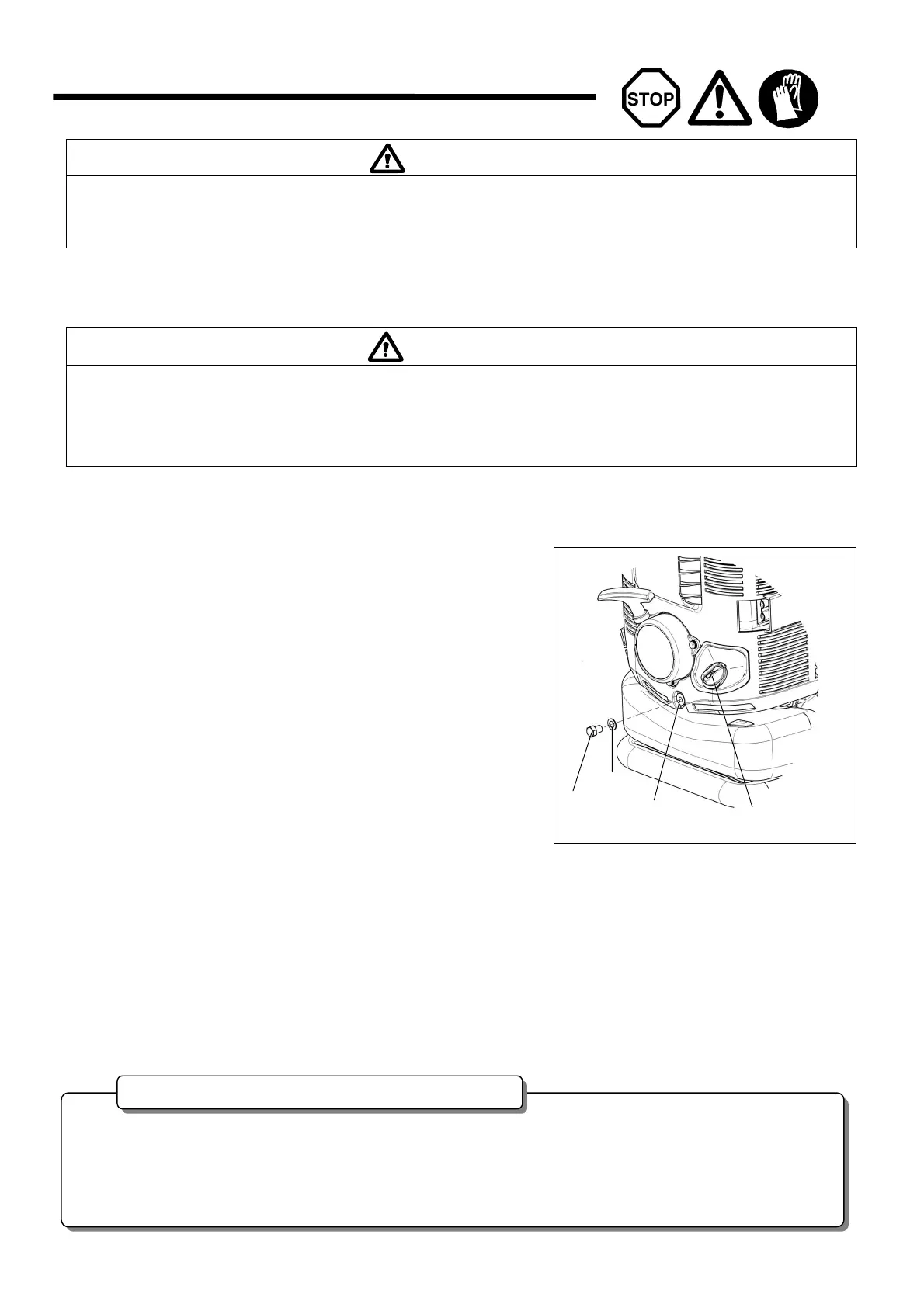 − Der Motor ist nach dem Abstellen sehr heiß. Es besteht Verbrennungsgefahr!