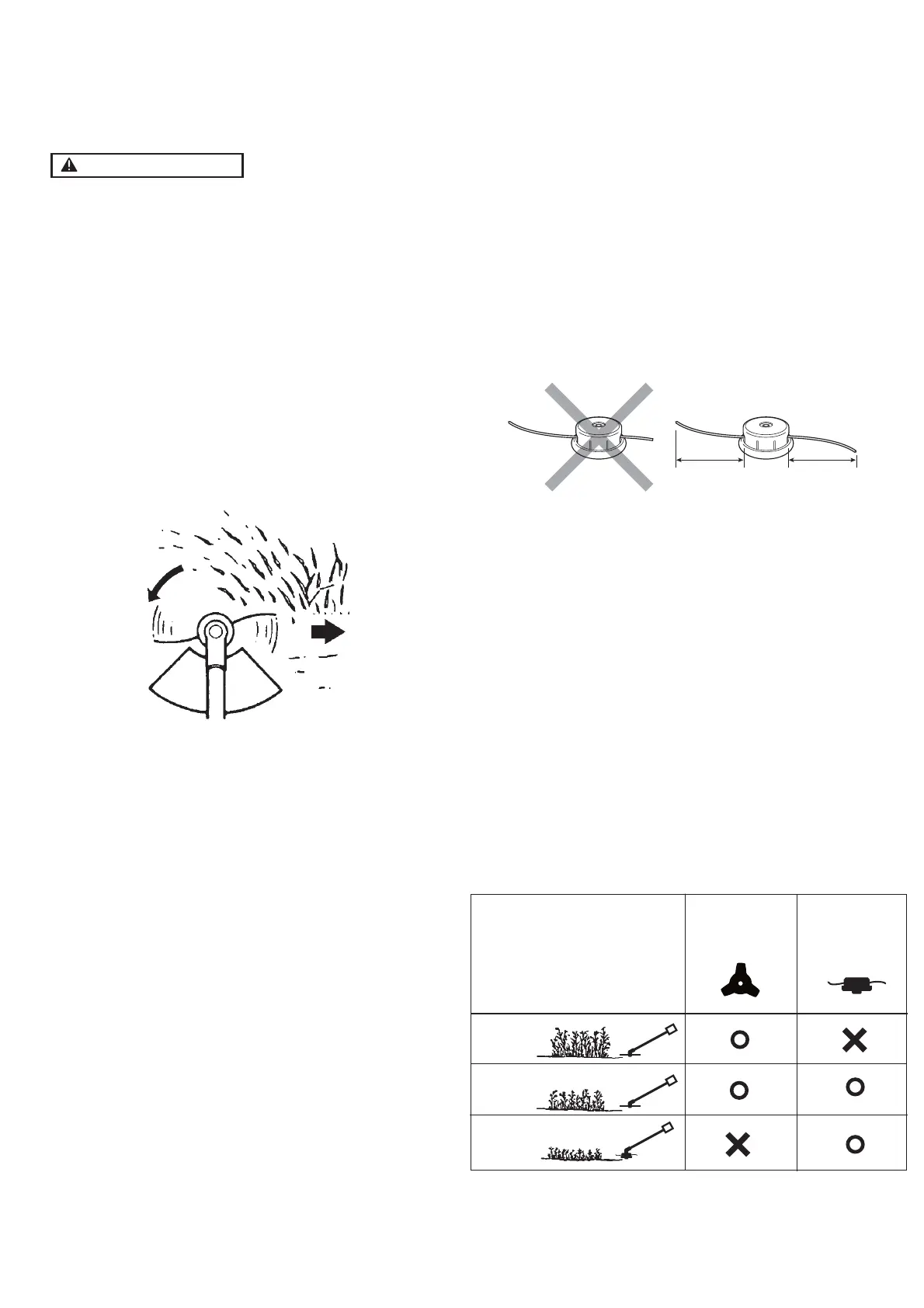 • Votre débroussailleuse est équipée d’une tête de coupe en