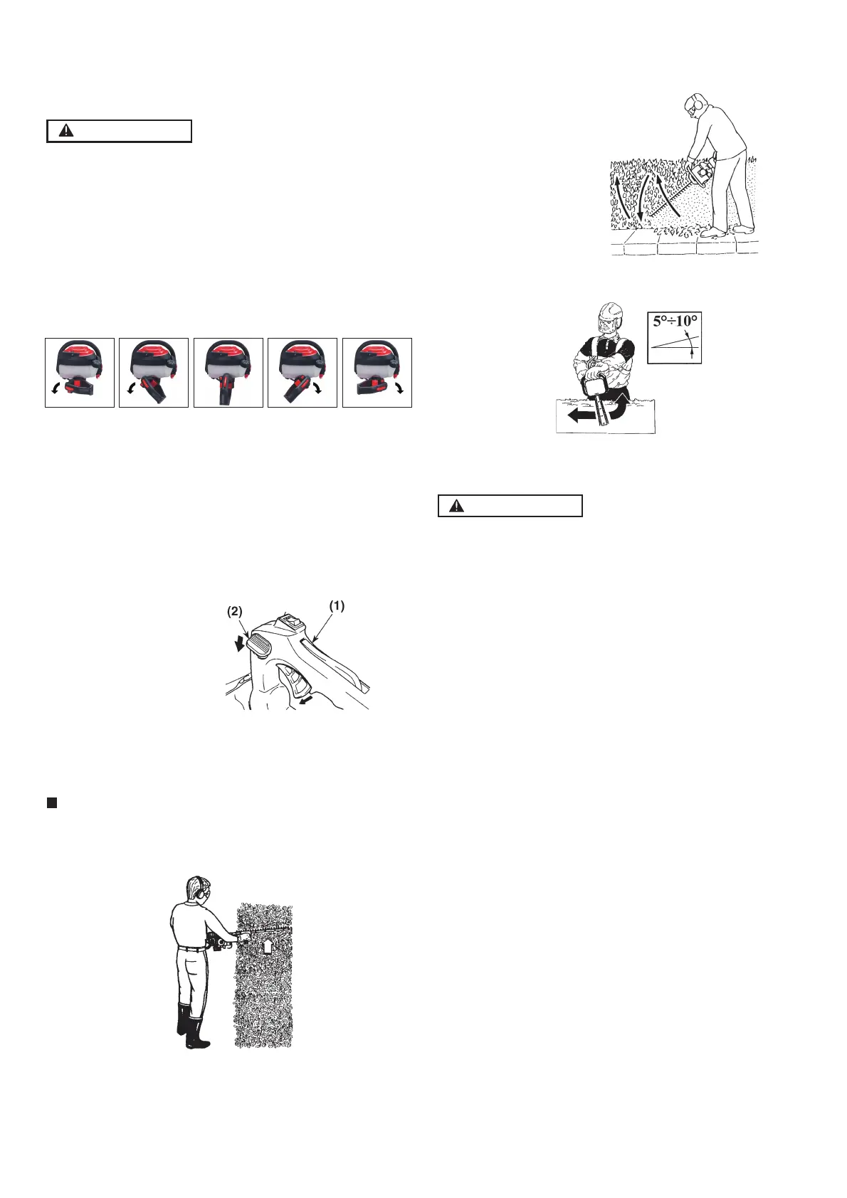 • Per ridurre la fatica durante l'utilizzo del tagliasiepe,