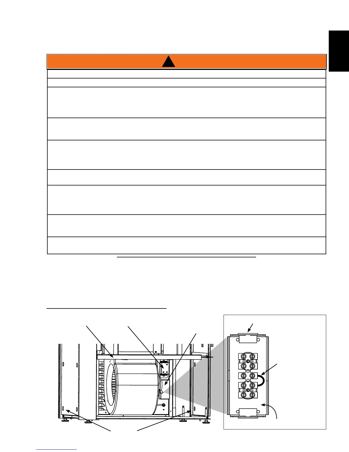 (THE STRAIN RELIEF FITTING) MUST MAINTAIN CLEARANCE TO ALL POINTS ON THE FURNACE