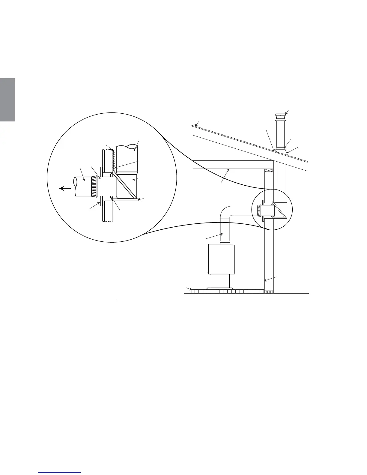 Si possible, l’installation des conduits de raccordement ne doit pas passer à travers un mur combustible.