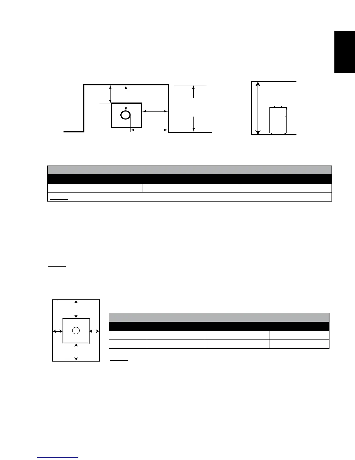 of no more than 4 feet (1.2m) and a height of at least 75” (1.9m). The minimum clearances are as shown.