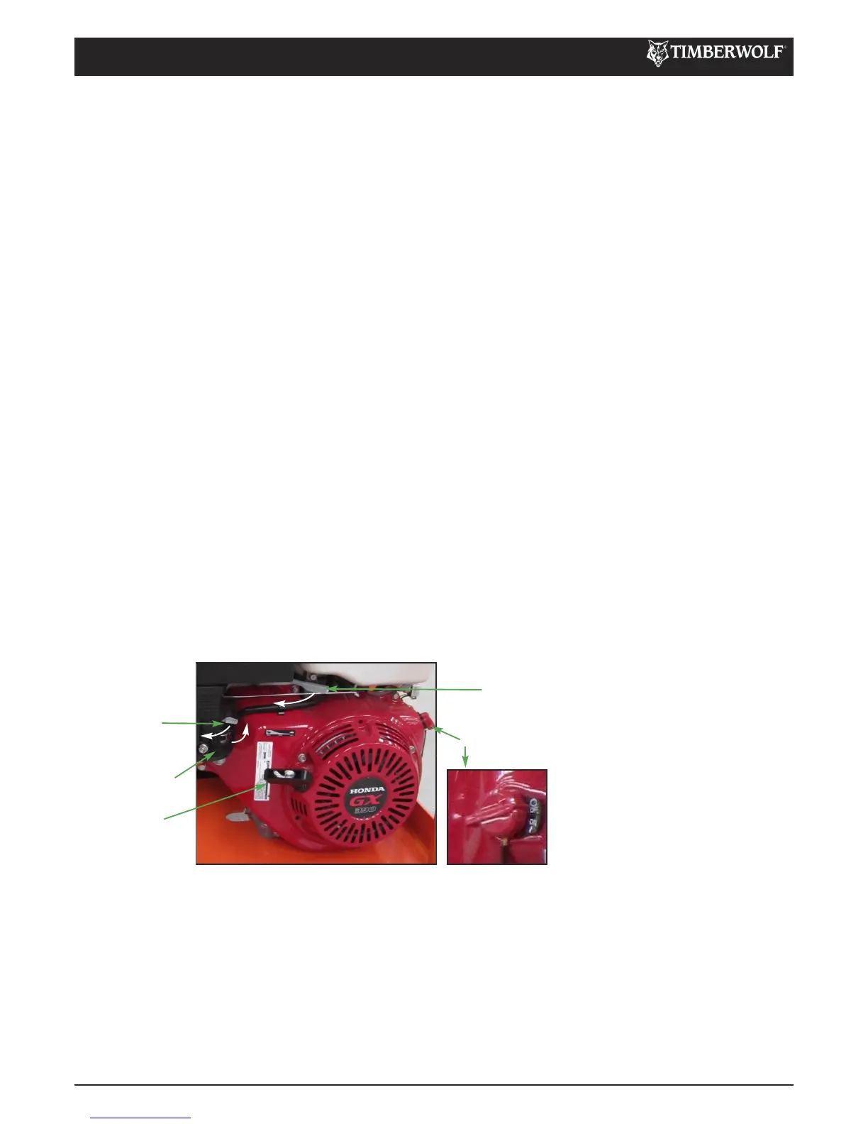There are five controls on the Honda GX 390 K1 that are required for daily usage of the TW 13/75G chipper.