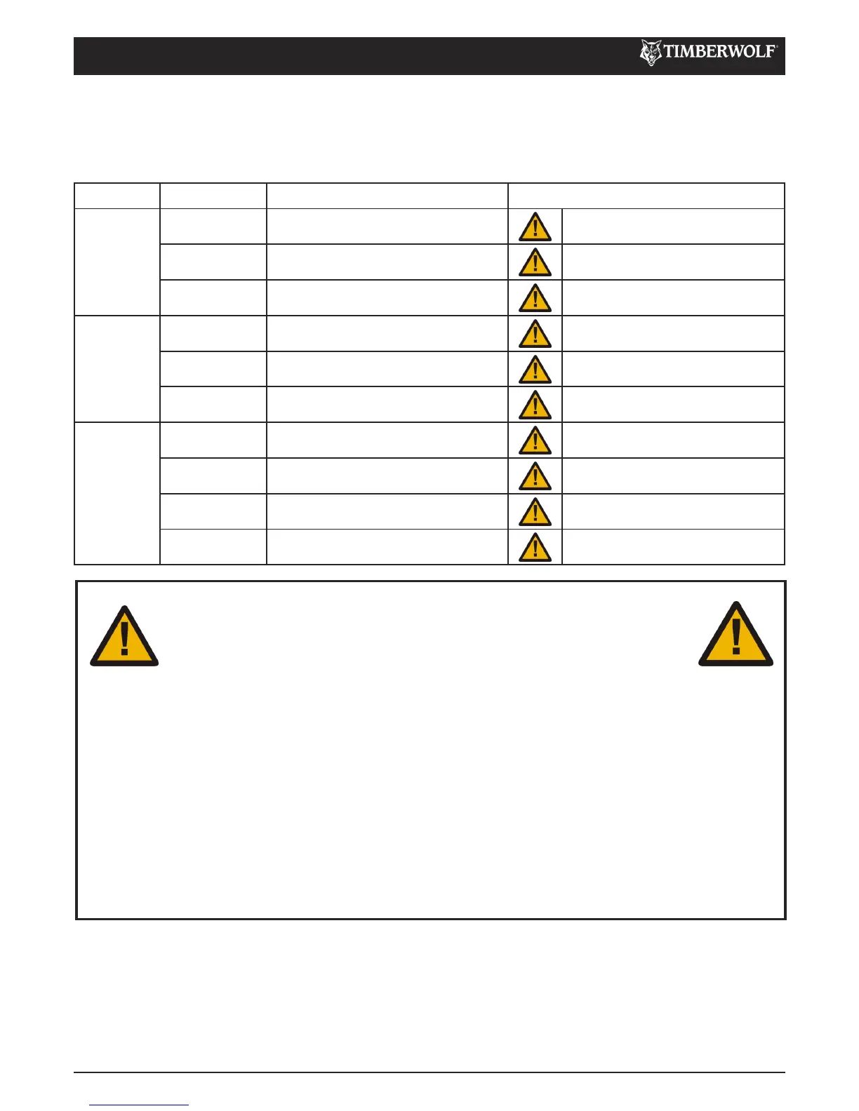Timberwolf accepts no responsibility for the failure of the owner/user of Timberwolf chippers to recognise generally