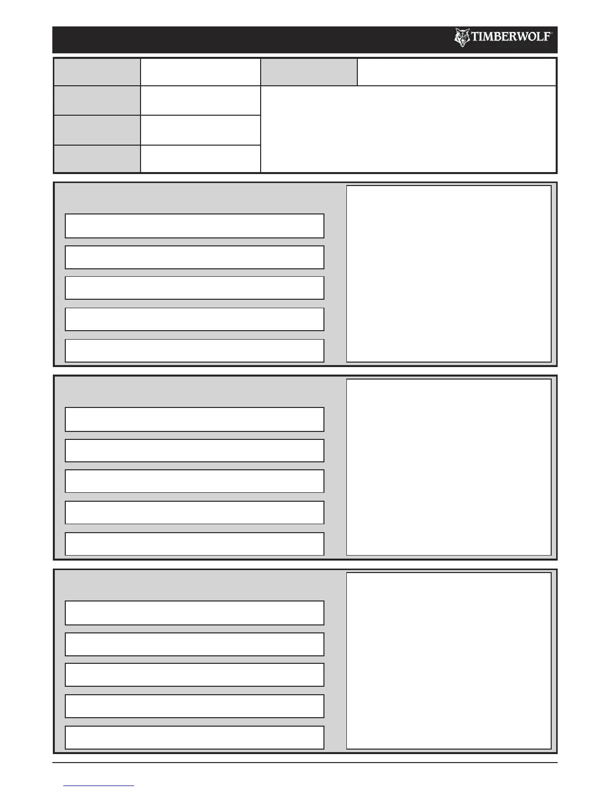 Timberwolf TW 13/75G - Warranty Service Check Record