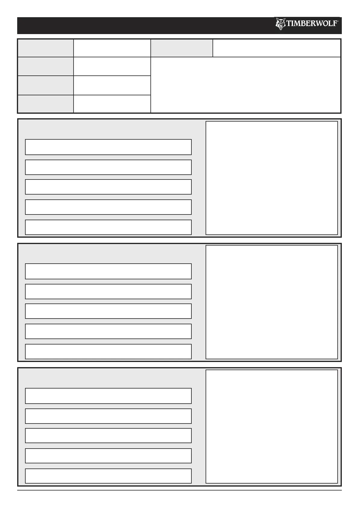 Timberwolf TW 160PH - Warranty Service Check Record