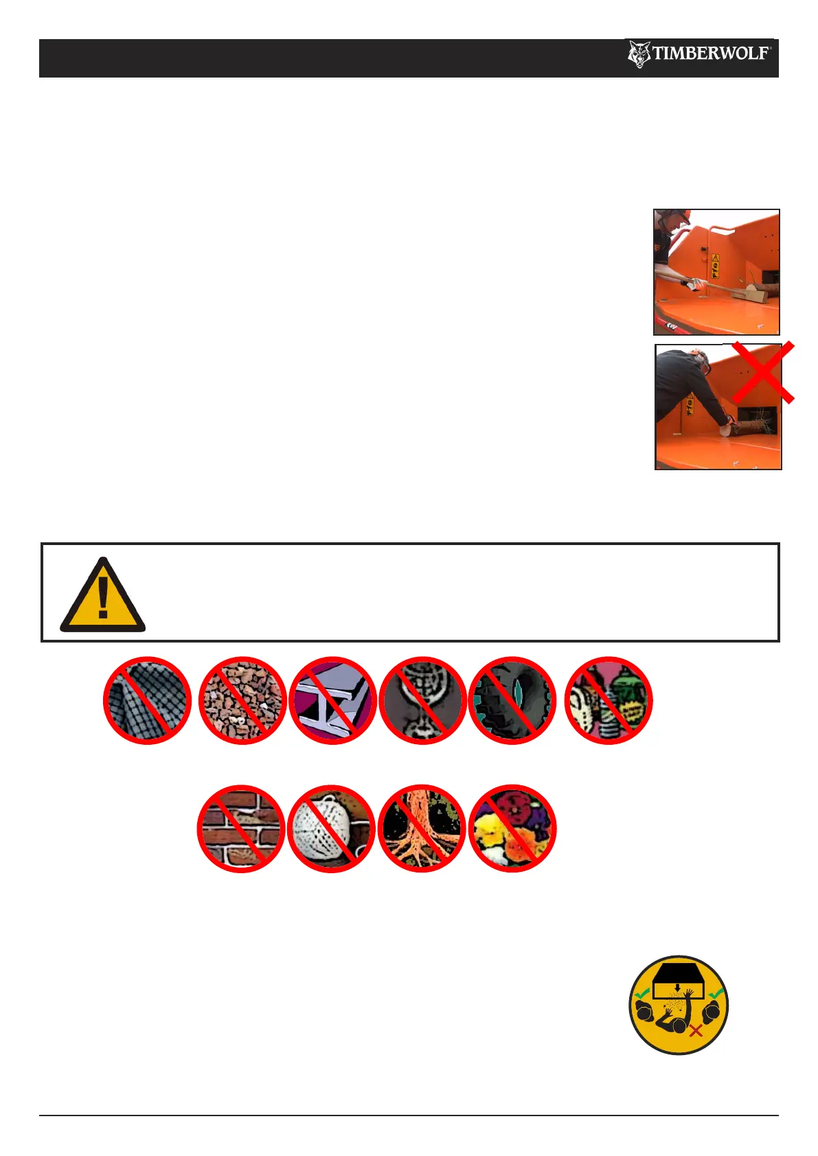 Do not use or attempt to start the chipper without the feed funnel, guards and discharge unit securely in place.•