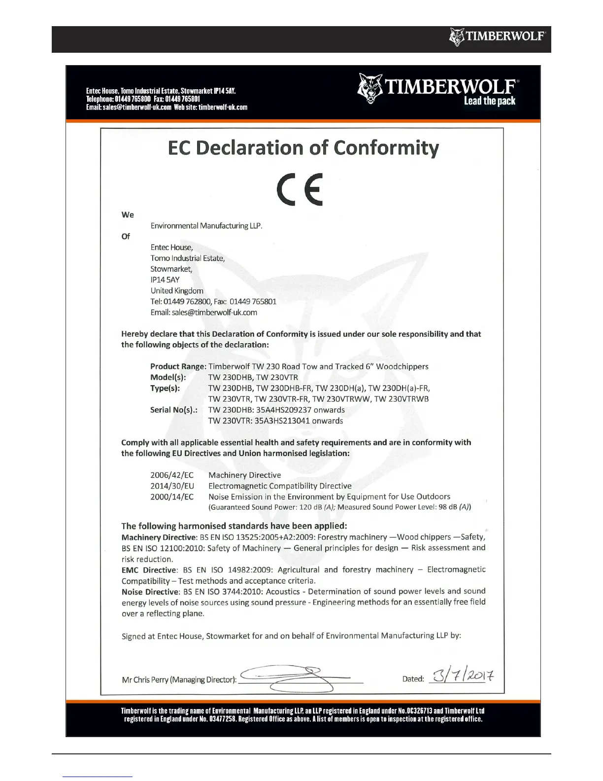 Timberwolf TW 230DHB - EC Declaration of Conformity