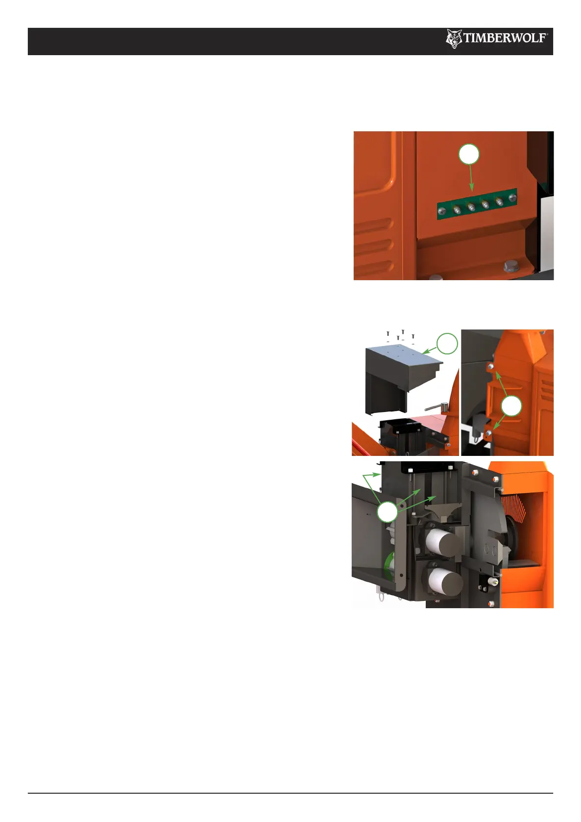Replace rotor housing blade access hatch then top guard. Refit nuts 6