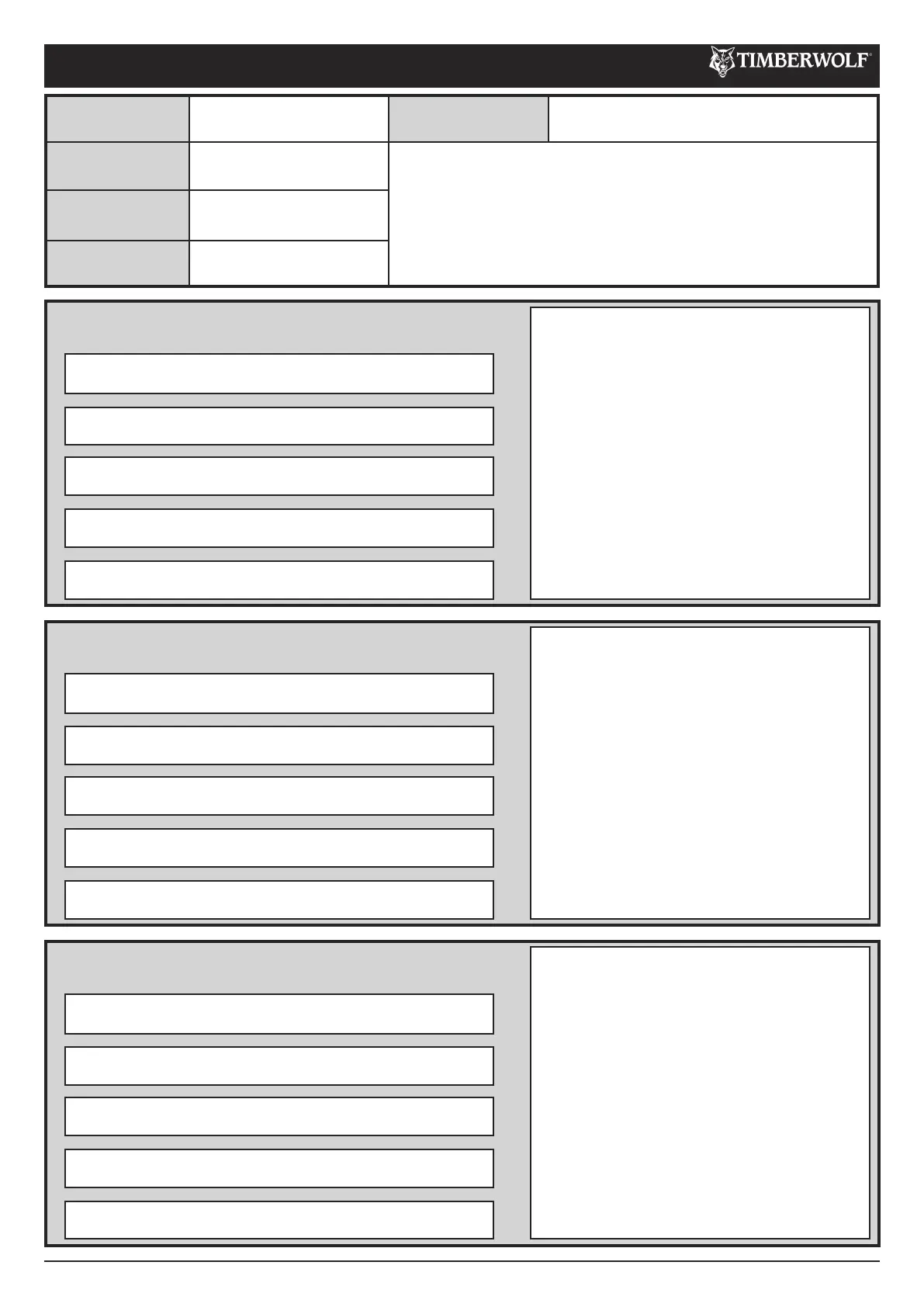 Timberwolf TW 230VTR - Warranty Service Check Record