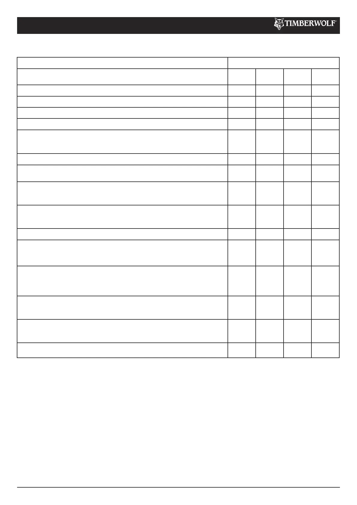 Store the chipper in a dry place at +5°C to +40°C. NOTE: Timberwolf strongly recommends the