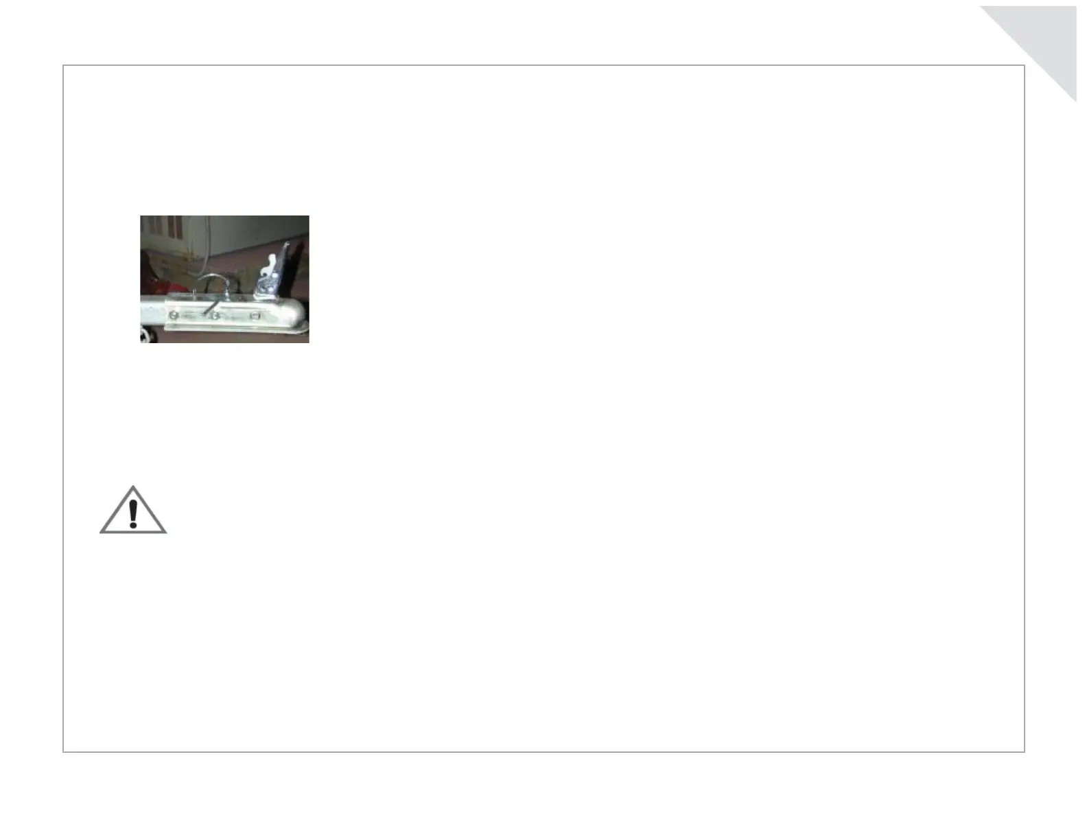 • Cross the safety chains under the hitch and fasten them securely to the tow vehicle. Leave enough slack in the chains to permit