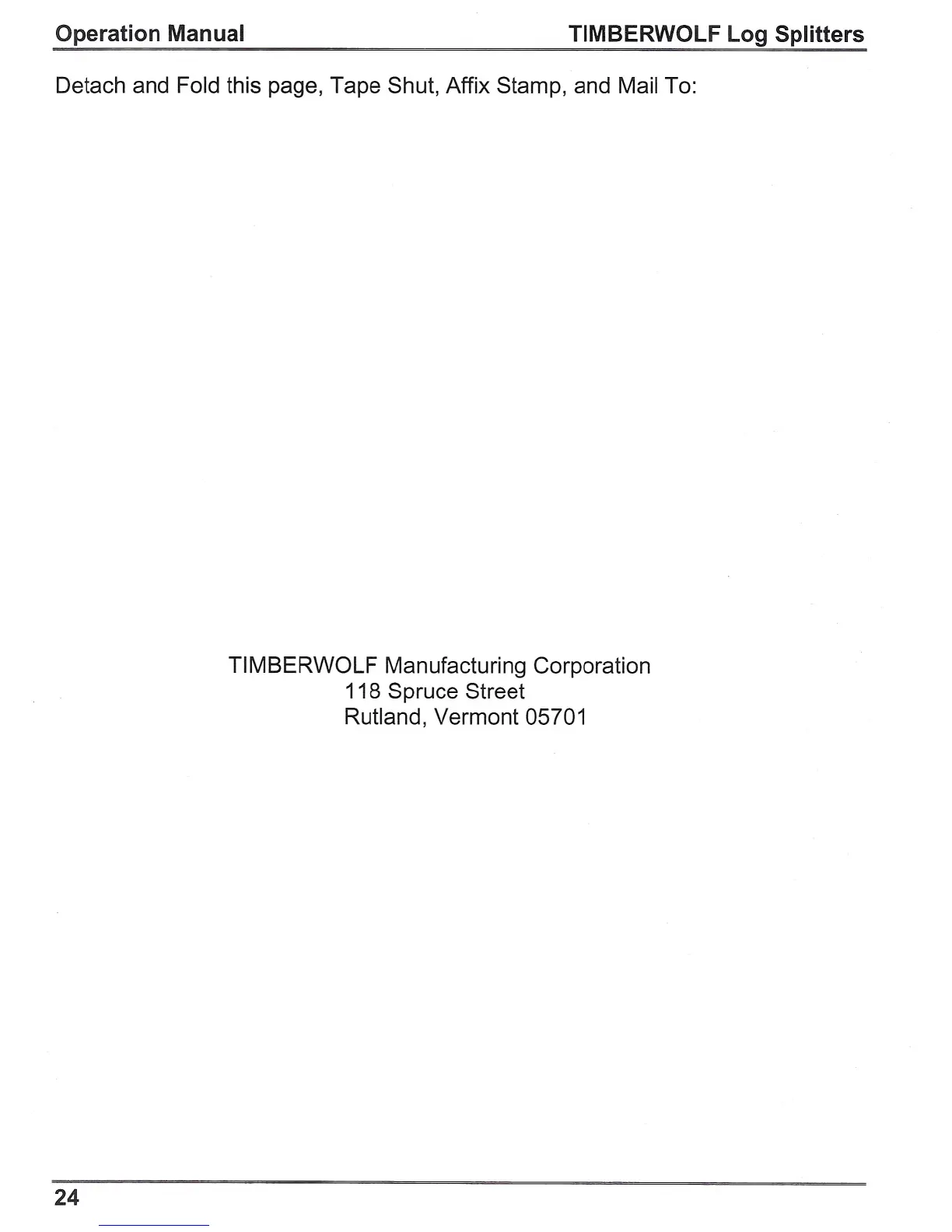 Operation Manual TIMBERWOLF Log Splitters