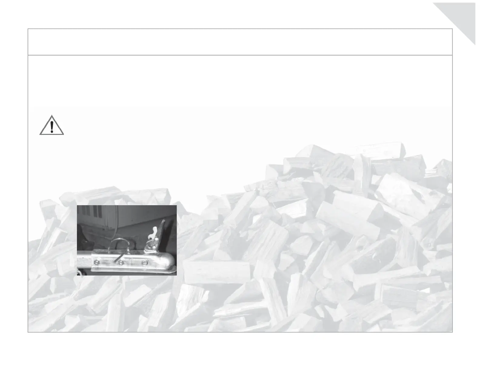 • Make sure log splitter’s ball coupler is fi rmly attached to ball on tow vehicle hitch: