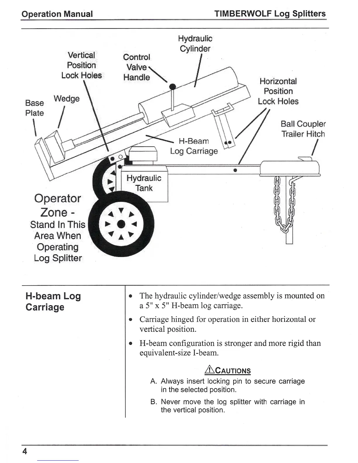 a 5" x 5" H-beam log carriage.