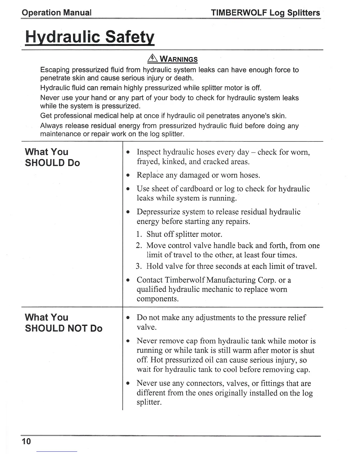 Hydraulic fluid can remain highly pressurized while splitter motor is off.