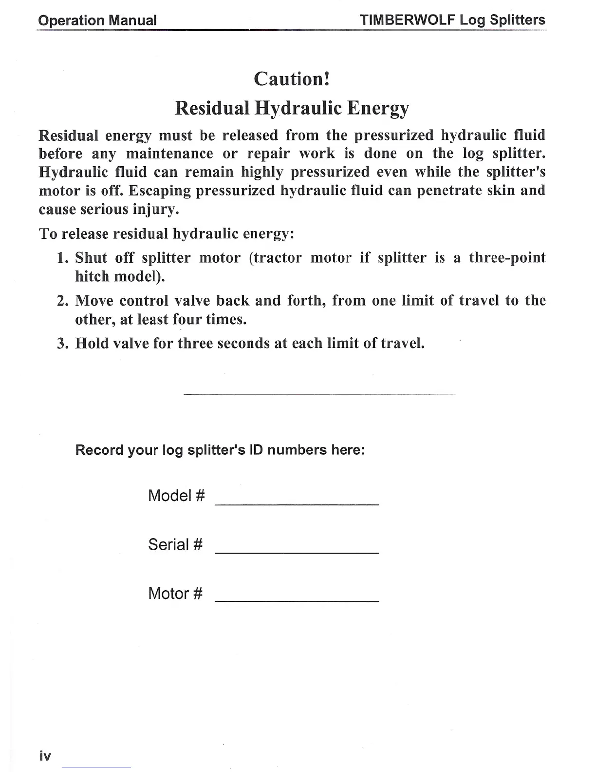 1. Shut off splitter motor (tractor motor if splitter is a three-point