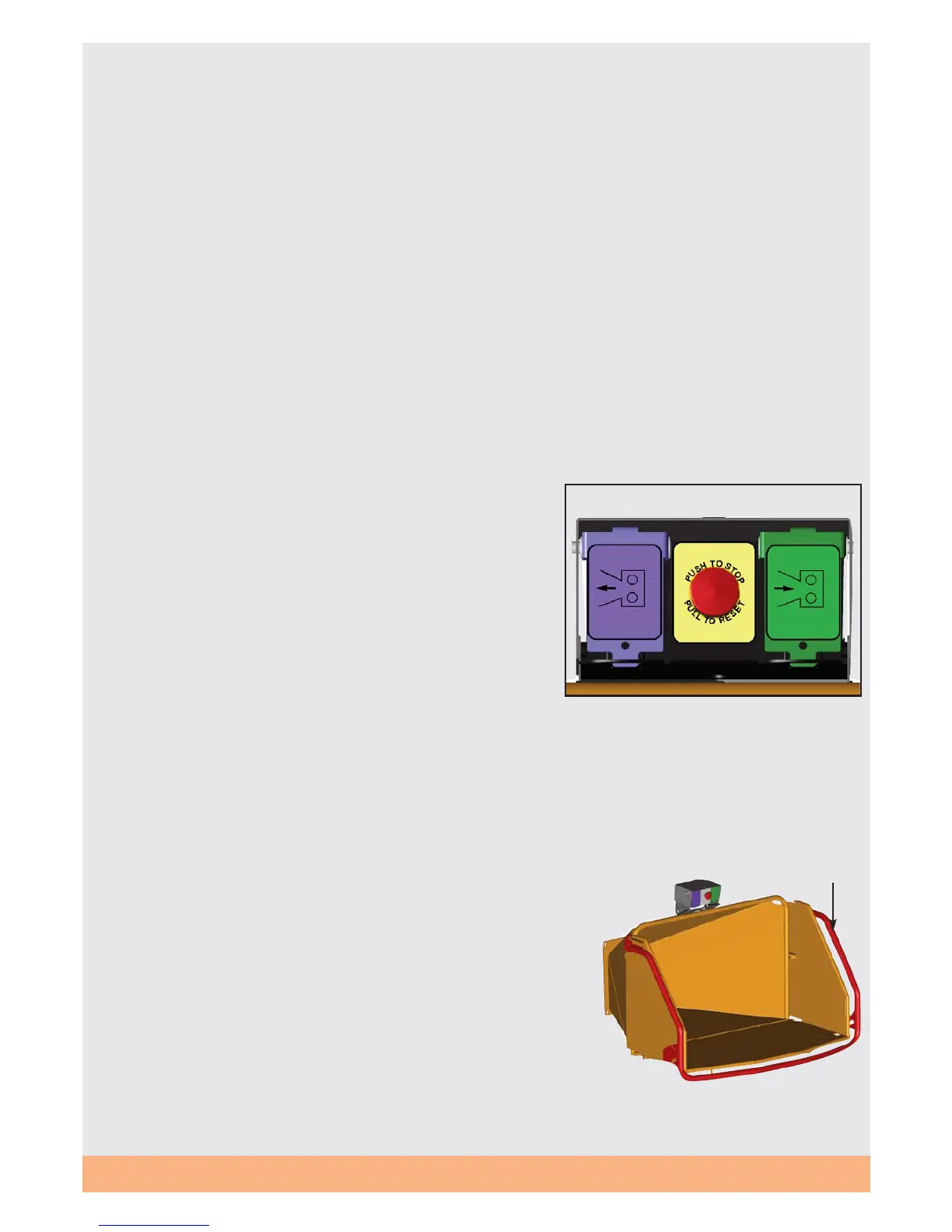 rollers while the button is pushed. You do not have to press the red stop bar or button before press-