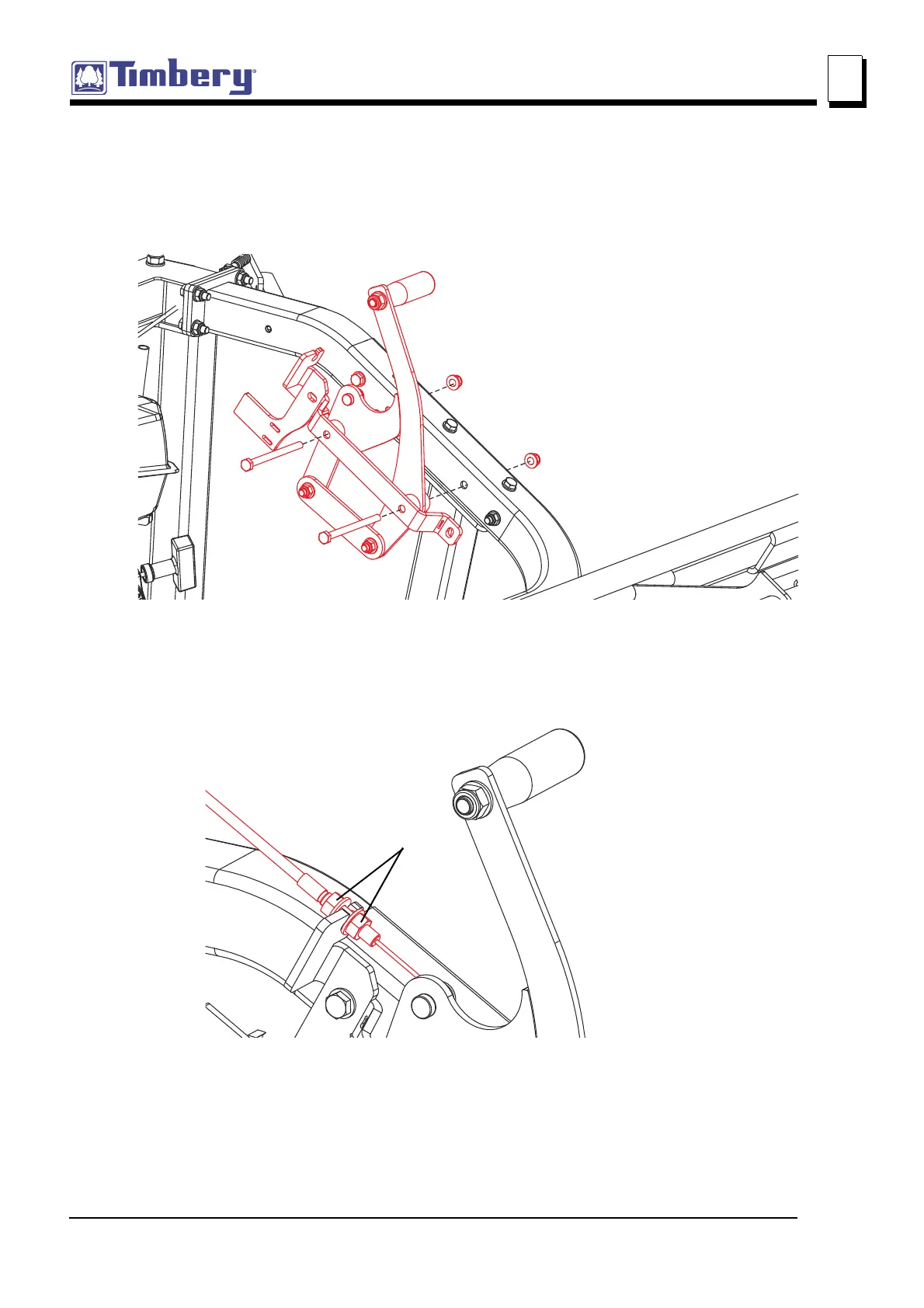 1. Install the clutch lever to the sawmill mast frame using the fasteners shown below.