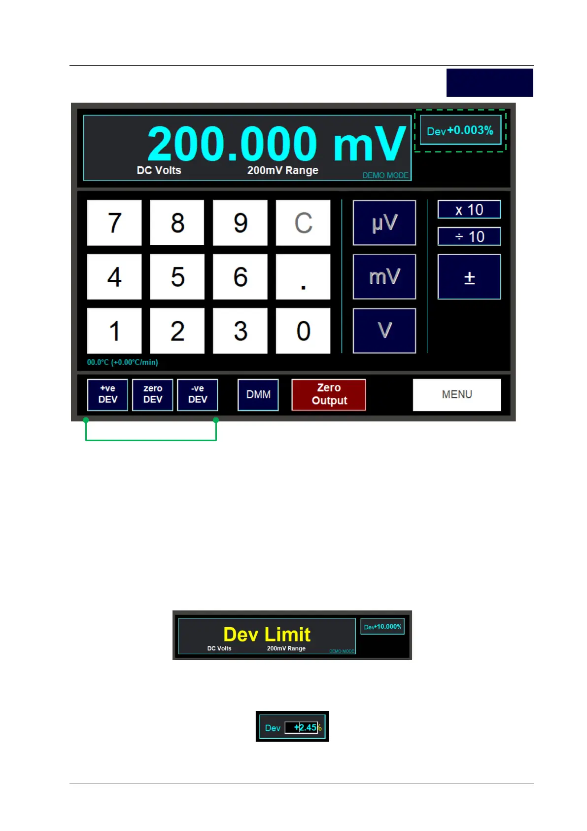 To apply a negative amount of deviation, use the – Dev button.