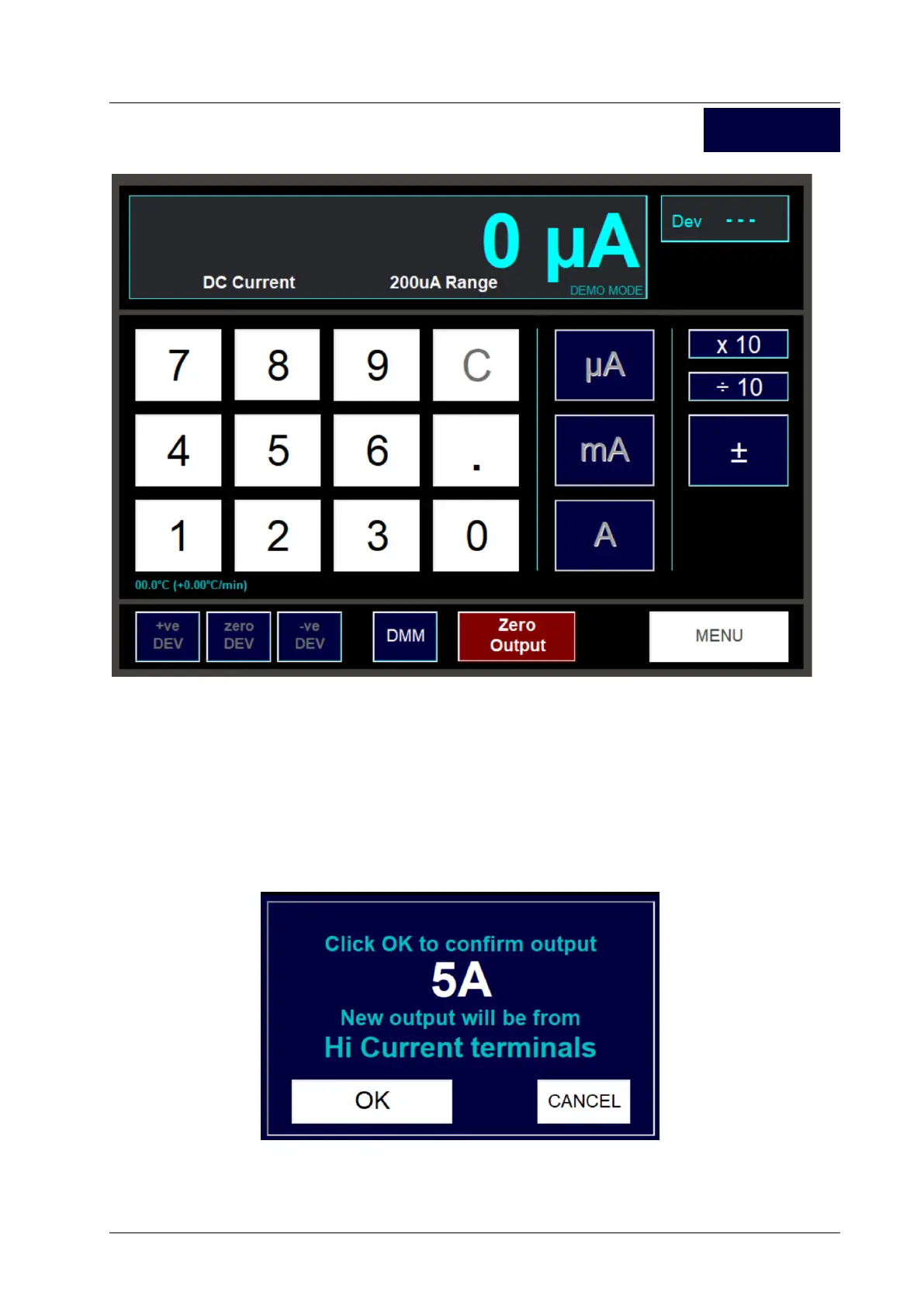 The layout and usage of this screen is almost identical to the screen used for setting DC V.