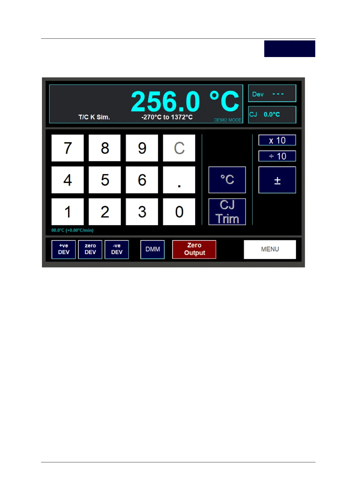 The +/- button can be used to toggle the simulated output temperature (if within the -270ºC to 1372ºC