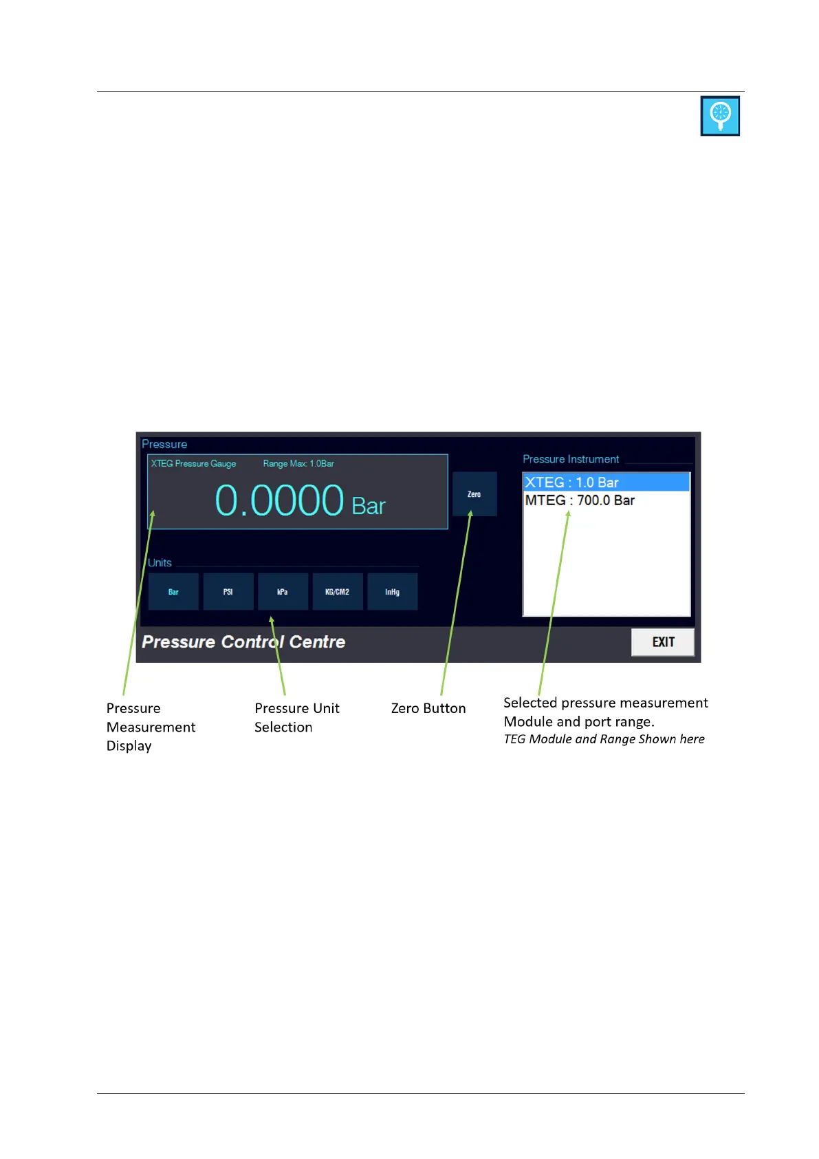 Note: RMTEG and MTEG modules have a primary display on the gauges. The Pressure Control