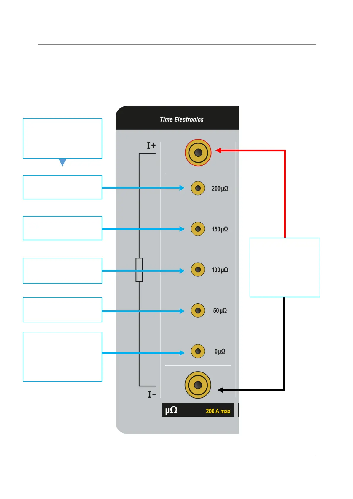 Example showing 200 μΩ range (200 A max) below. The voltage terminals are resistance set