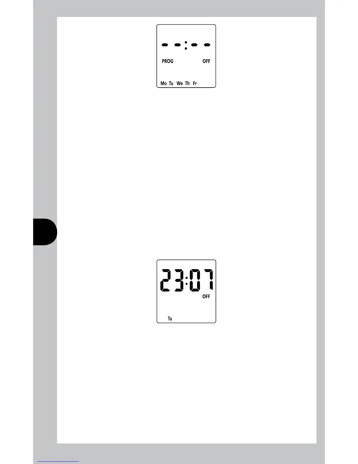 After the last off time for programme 4 has been set, press Prog to exit