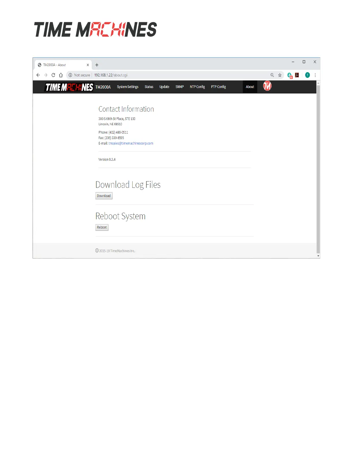 Web / timemachinescorp.com Email / tmsales@timemachinescorp.com Phone / (402) 486-0511