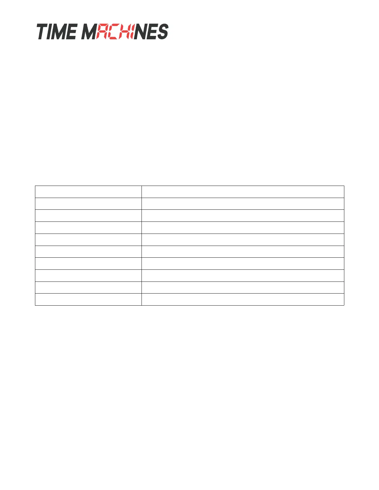 Web / timemachinescorp.com Email / tmsales@timemachinescorp.com Phone / (402) 486-0511