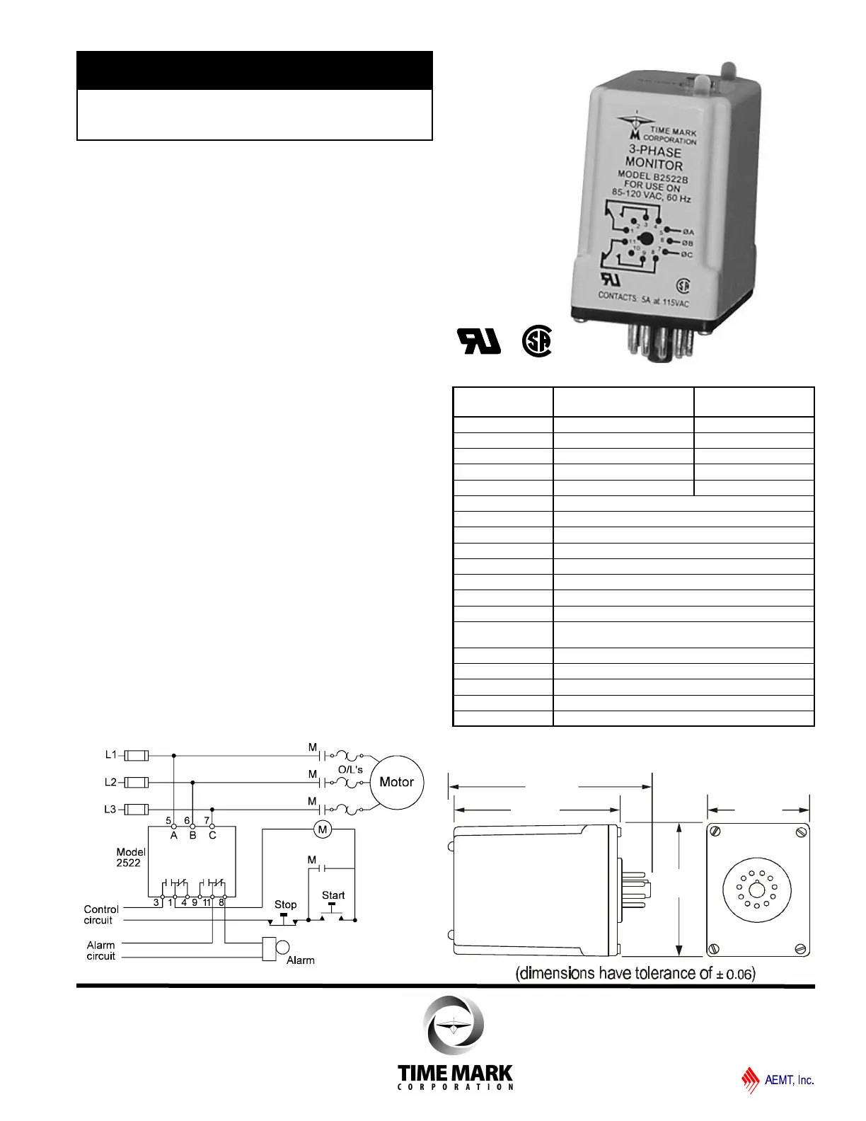 The Model 2522 continuously monitors 3-phase power