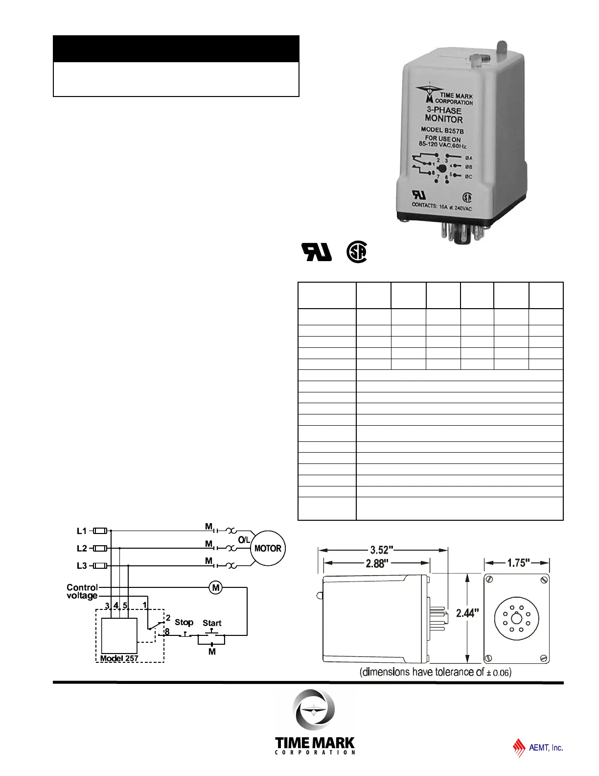 The Model 257 continuously monitors 3-phase power