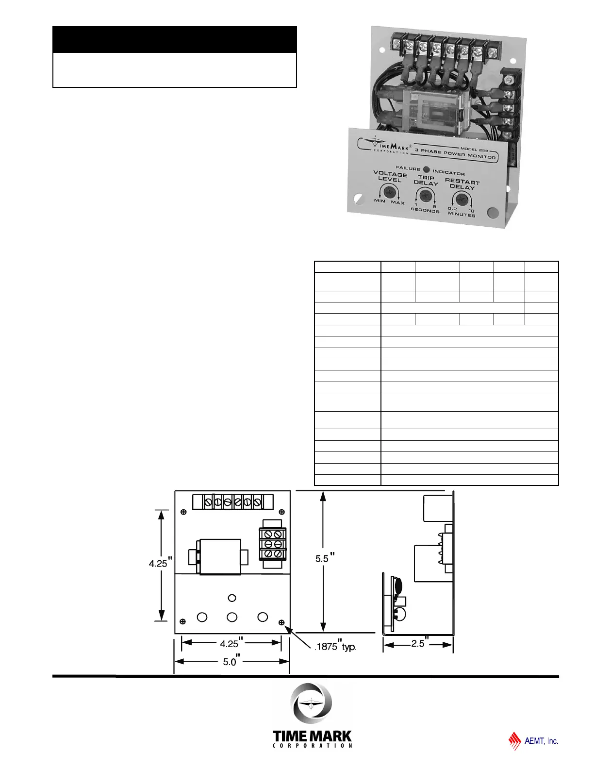 The Model 259 3-Phase Monitor is designed to protect
