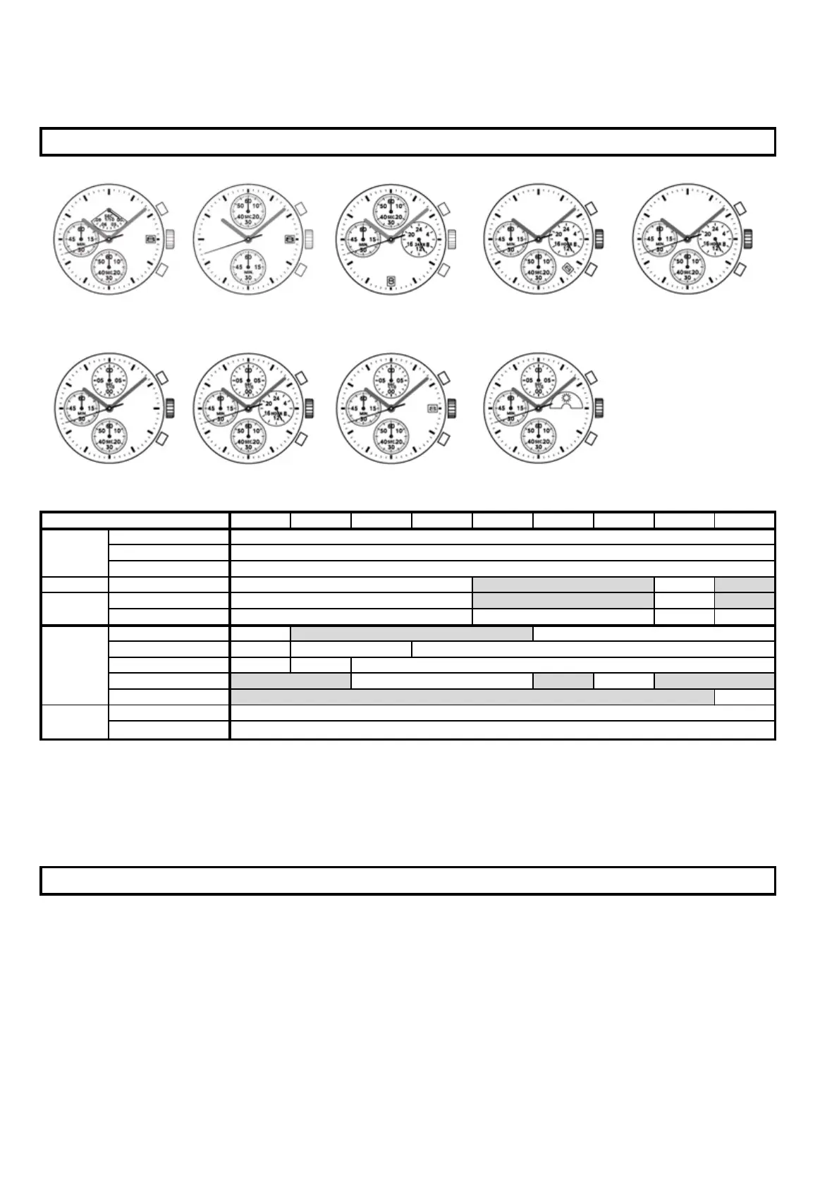 * 设定时间之前,确定秒表1/10秒指针(如适用),秒表秒针及秒表分针均于 "0" (12)位置。