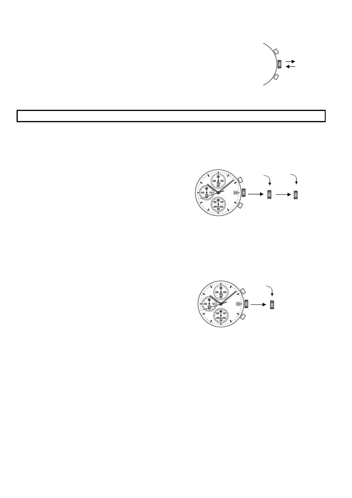 3) 秒针于12时位置时,拔出表冠至位置二,秒针立刻停止,