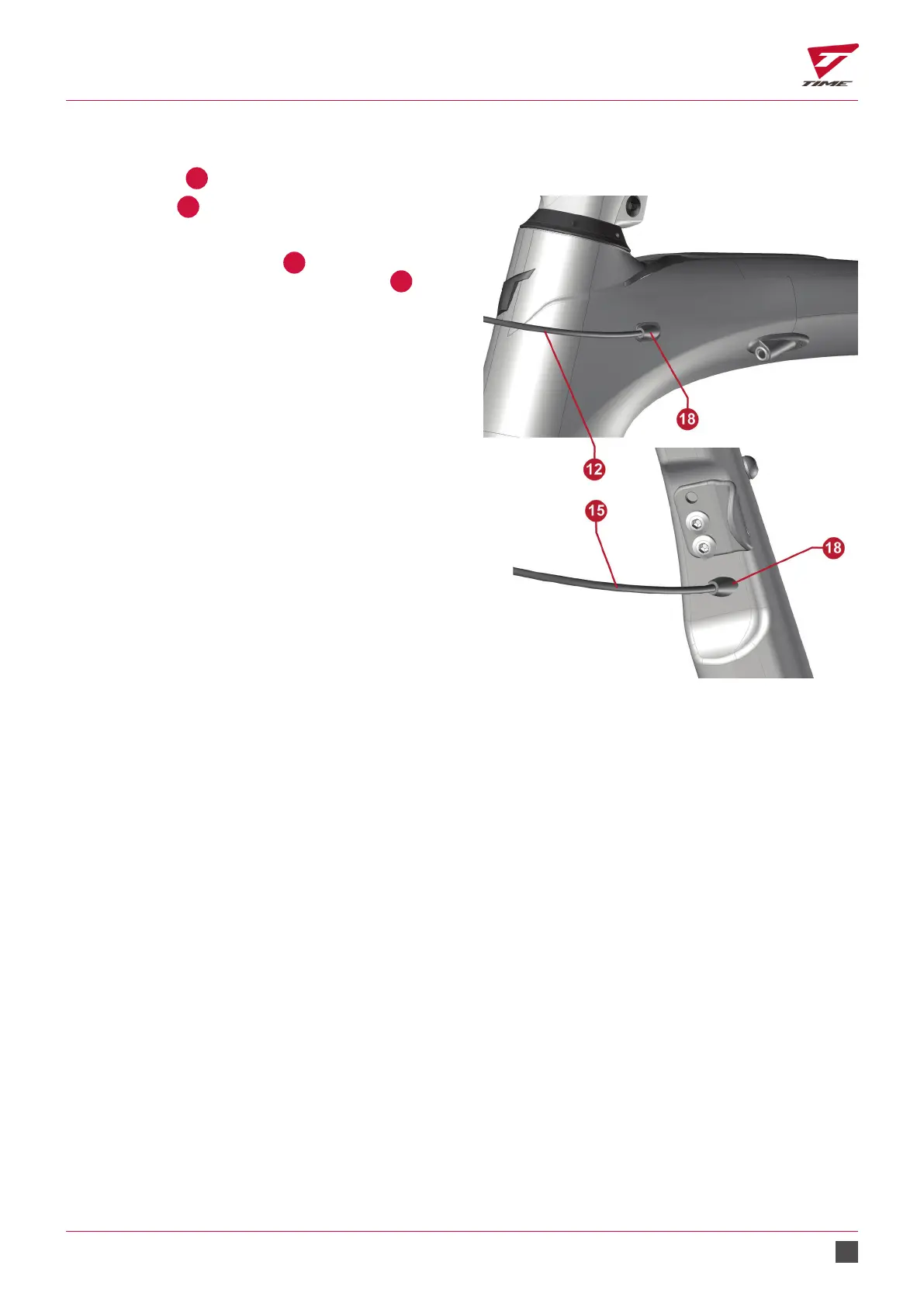 entry holes of the front and rear derailleur wires (top