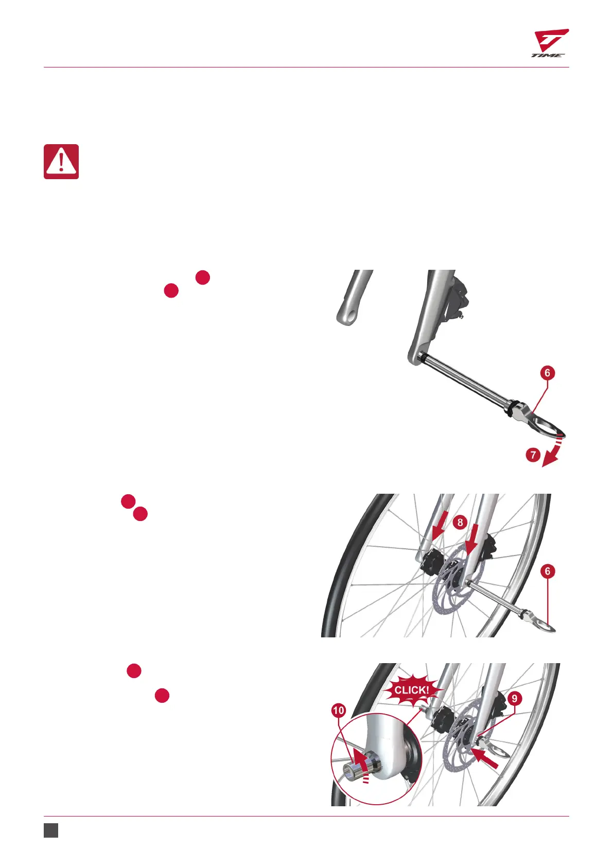 TIME Sylon disc frames are equipped with wheel axles, with a quick-fastening through-axle system.