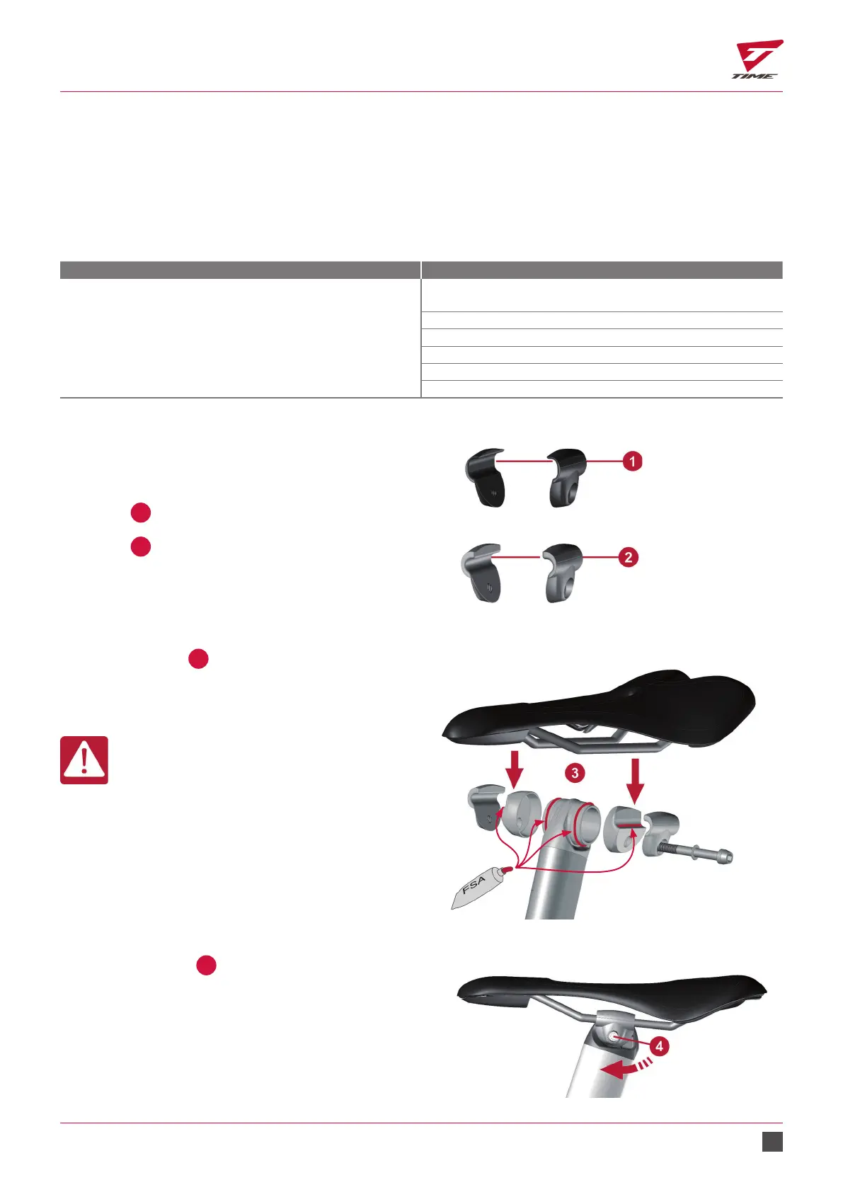 Before assembling the bike, check the compatibility of the accessories and components with the TIME frame.