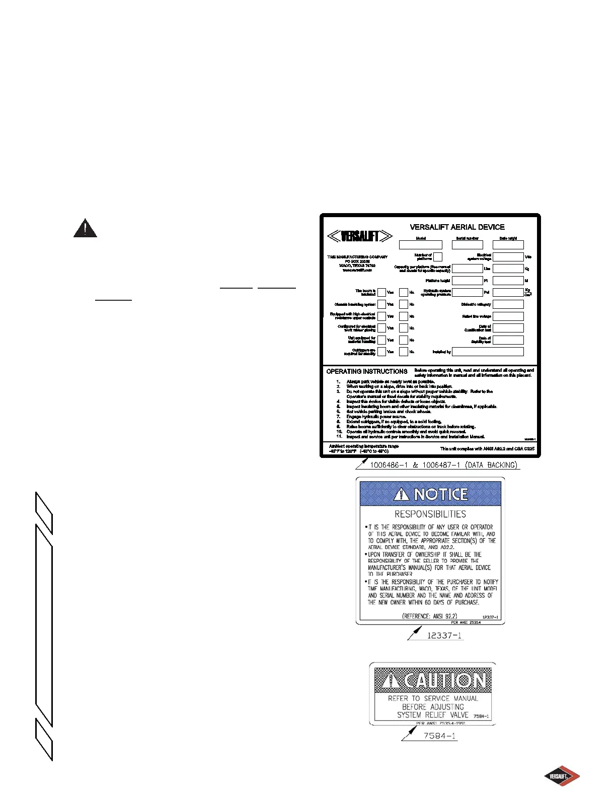 hazards when operating the Versalift. It is the