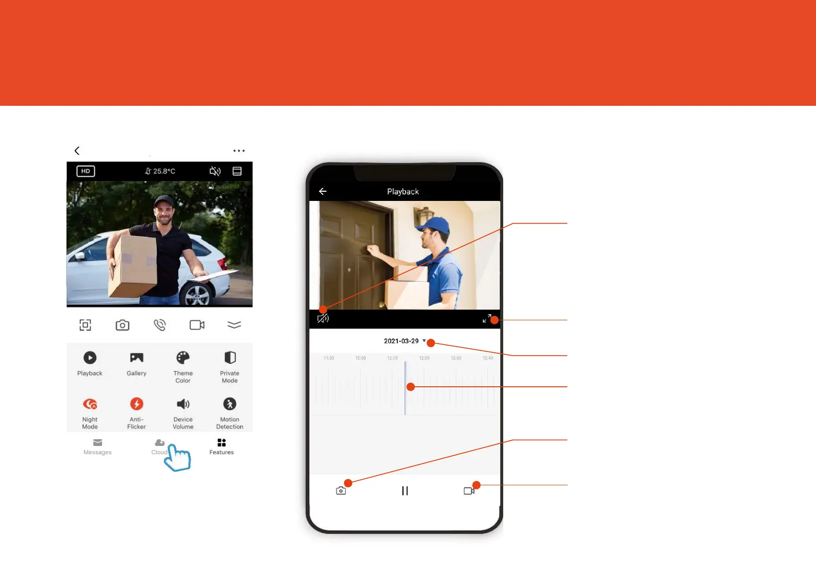 Time2 Bella - Viewing Cloud Storage Recordings; Accessing Cloud Recordings via App; Cloud Playback Interface Controls; Saving Cloud Footage to Phone