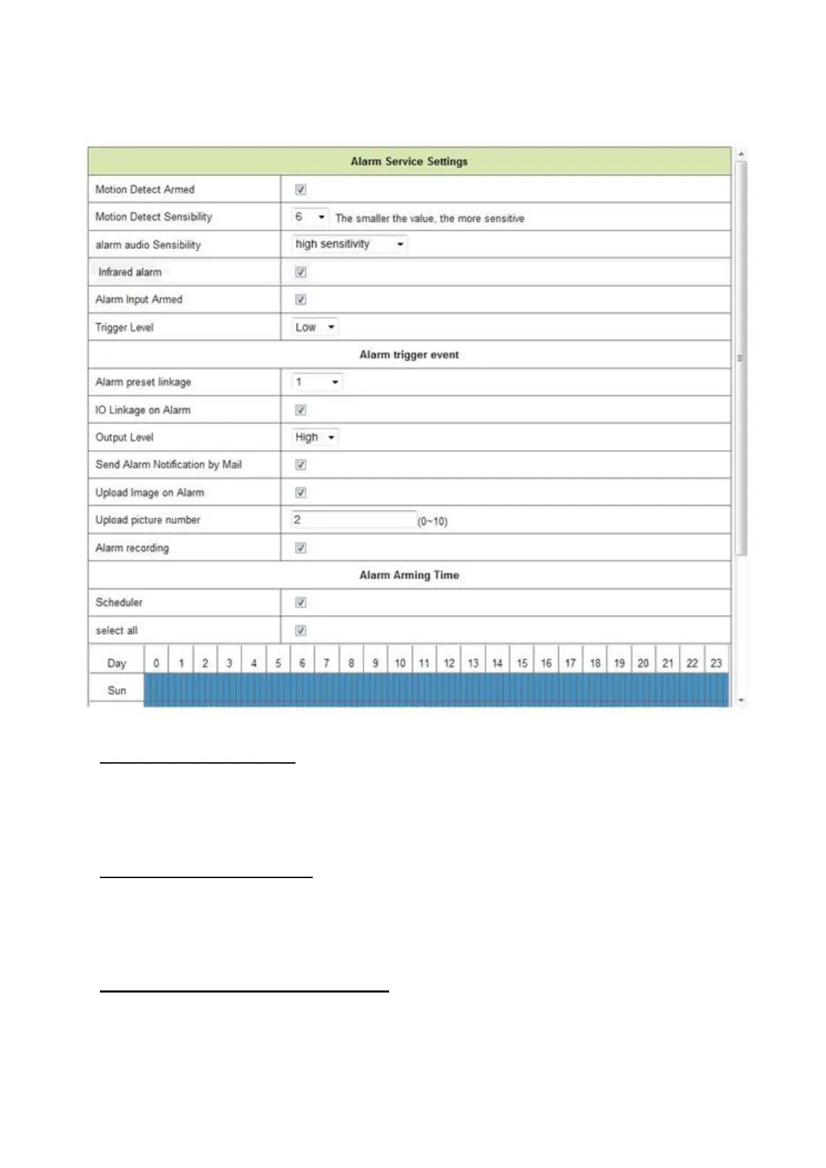 motion detector will trigger an alarm. Tick the ‘Motion Detect Armed’