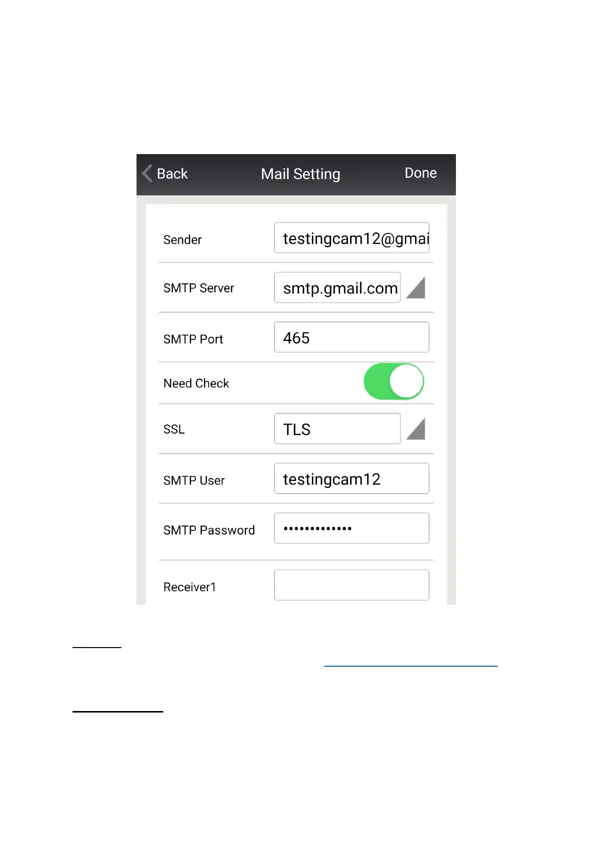 Enter the senders email address e.g. testingcam12@gmail.com