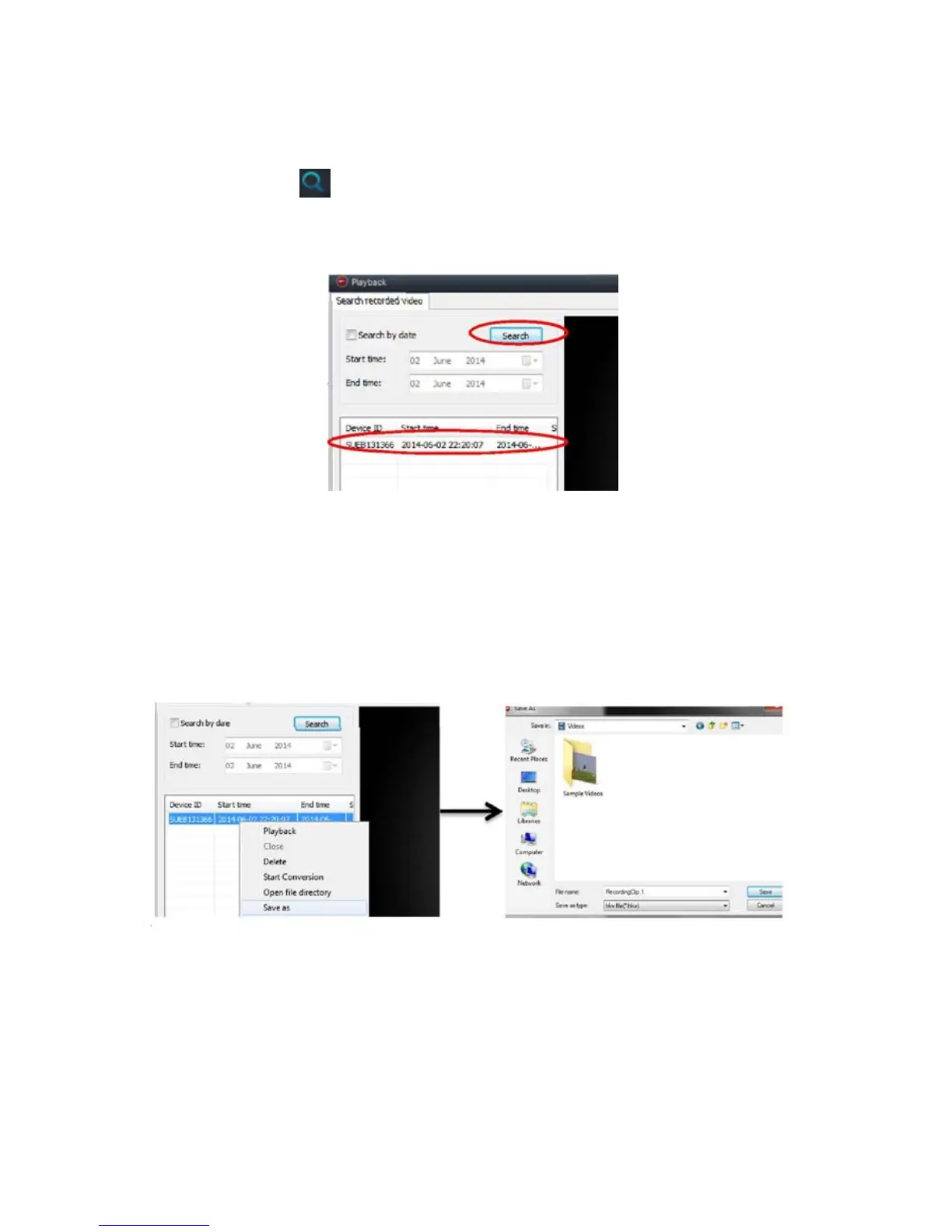 To save the camera recordings, right click on the video/image you wish to