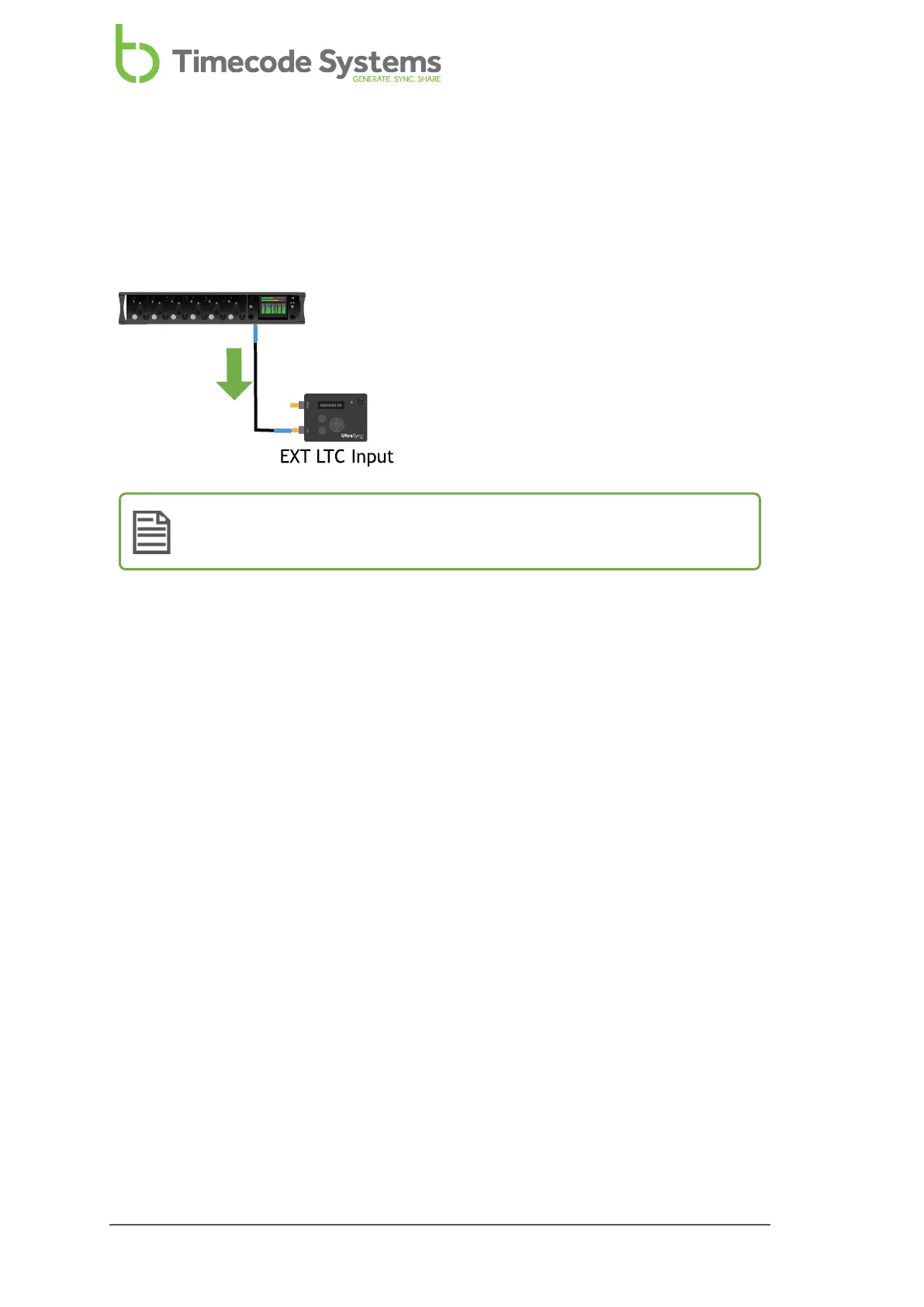 to the LTC port. The timecode can then be used by your UltraSync ONE, and passed